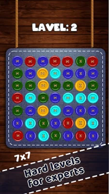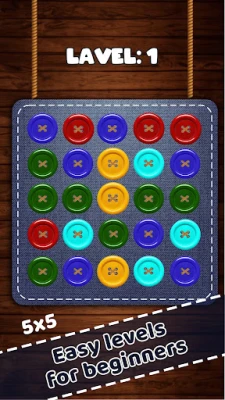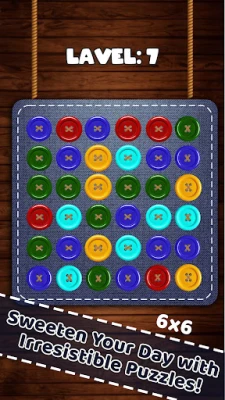When playing the game for the first time, you’ll be guided through a quick tutorial. You’ll see a scrap of fabric with colored buttons arranged on it. As you make your first move, an arrow will show you the selection path. To make a cut, simply tap on the first button and drag your finger along the line of buttons that you want to remove. Once you’ve highlighted a valid selection, release your finger, and the scissors will cut the buttons off the fabric.
