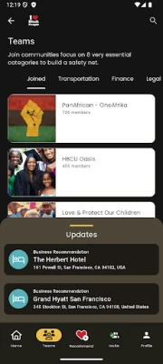 ● Team Chat Communities: Join action-based groups like Pan Afrikan Unity and Love & Protect Our Children to collaborate and organize through chat.