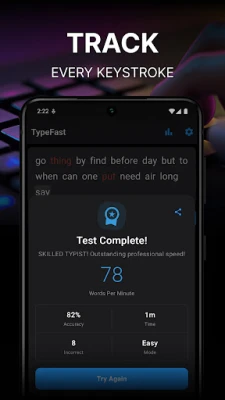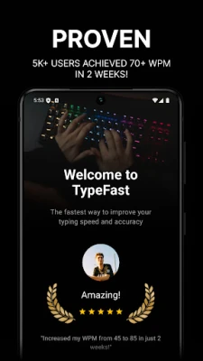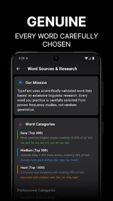 TypeFast helps you build real typing skills using scientifically-validated word lists. Whether you're using your phone screen, an external keyboard, practice the words that actually matter.