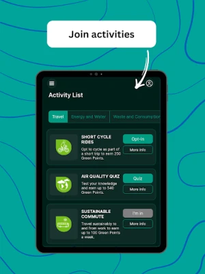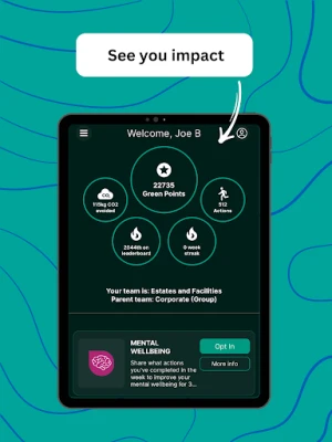 This app is the companion for the Green Rewards programme, designed to encourage staff to take positive actions that improve sustainability and wellbeing.